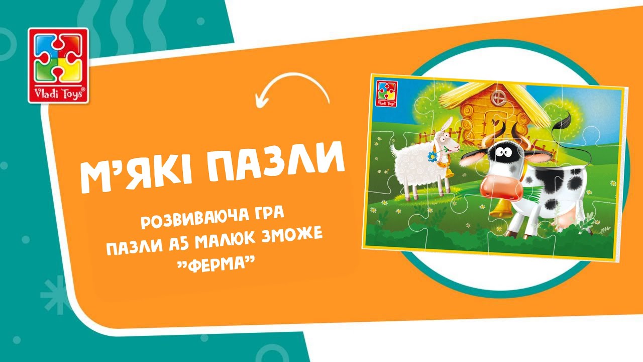 Досліджуйте цей світ — із пазлами Ферма серії Малюк Зможе! Розробники бренду Vladi Toys створили їх із м’якого спіненого матеріалу великої форми, що дає змогу дитині зручно тримати їх у руці. Гра підходить для дітей від 3 років.